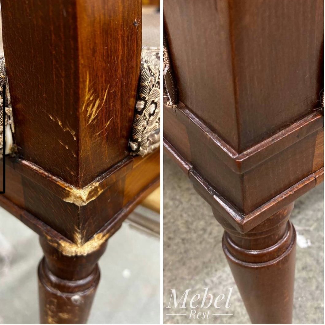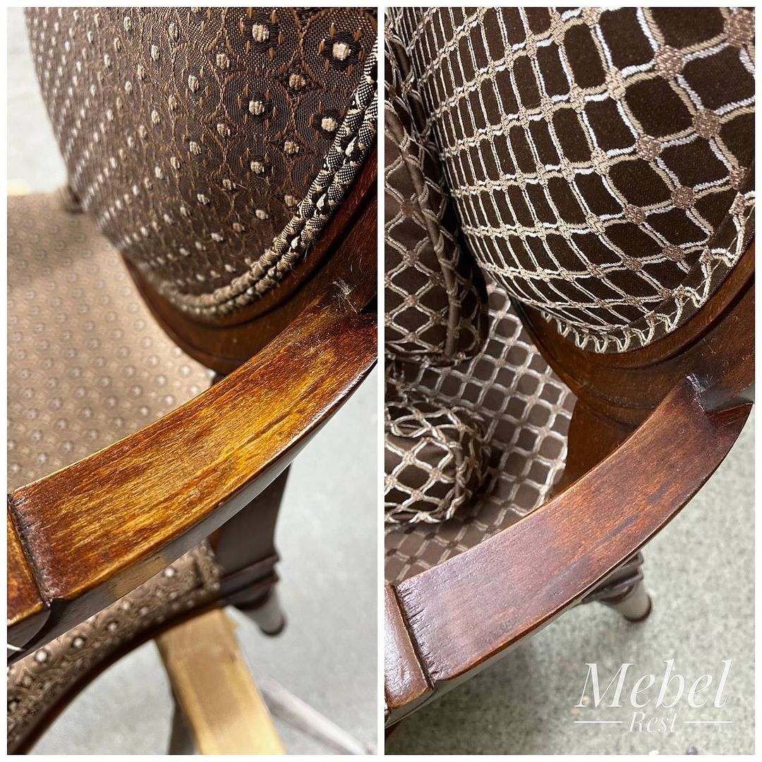 Перед нашими мастерами стояла непростая задача: отреставрировать мебель столь утонченного и редкого стиля. Гарнитур относительно новый, порядка десяти лет, находился в семье, где есть дети, и несмотря на бережное отношение, набор требовал тщательной реставрации для восстановления первоначального состояния.
