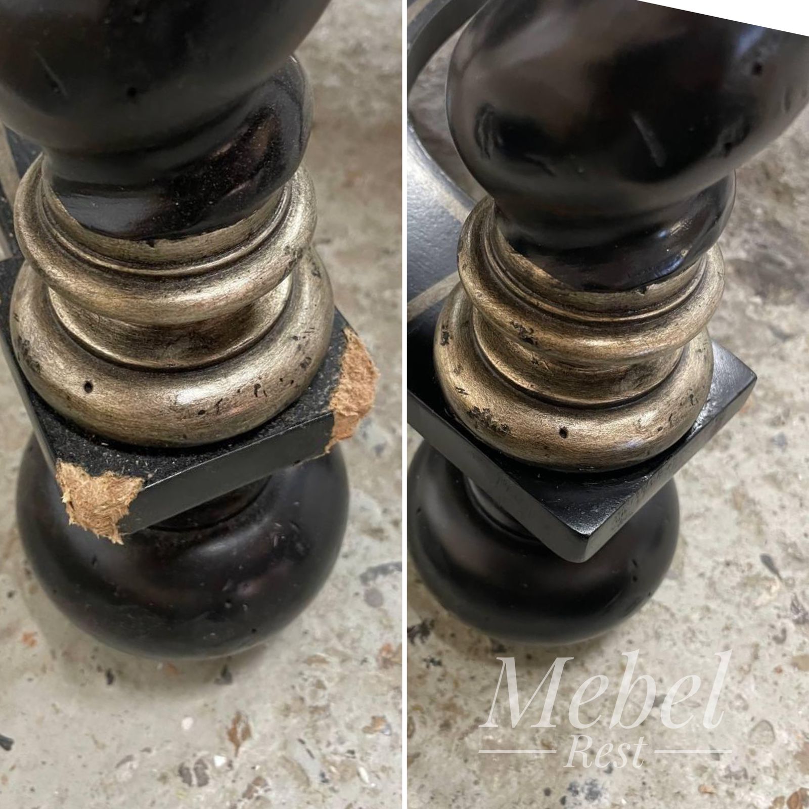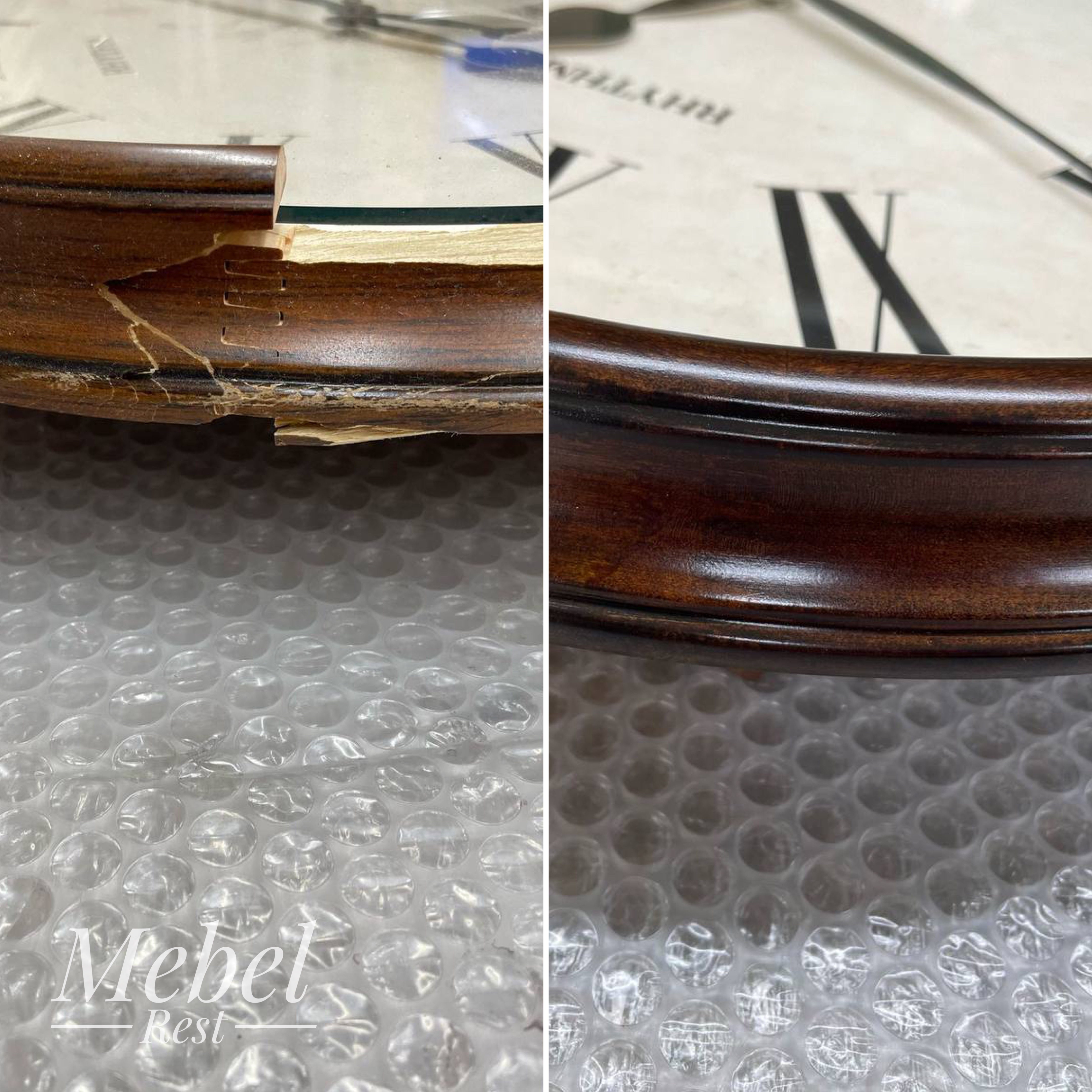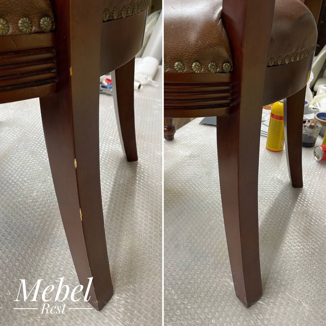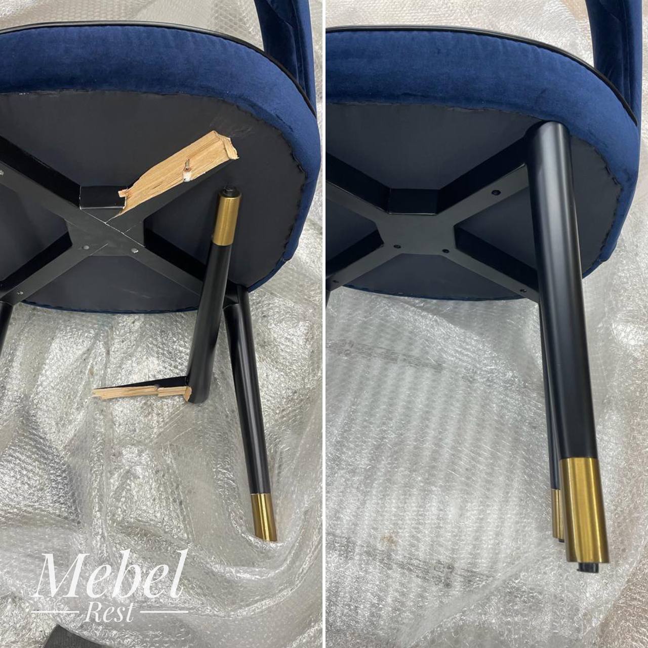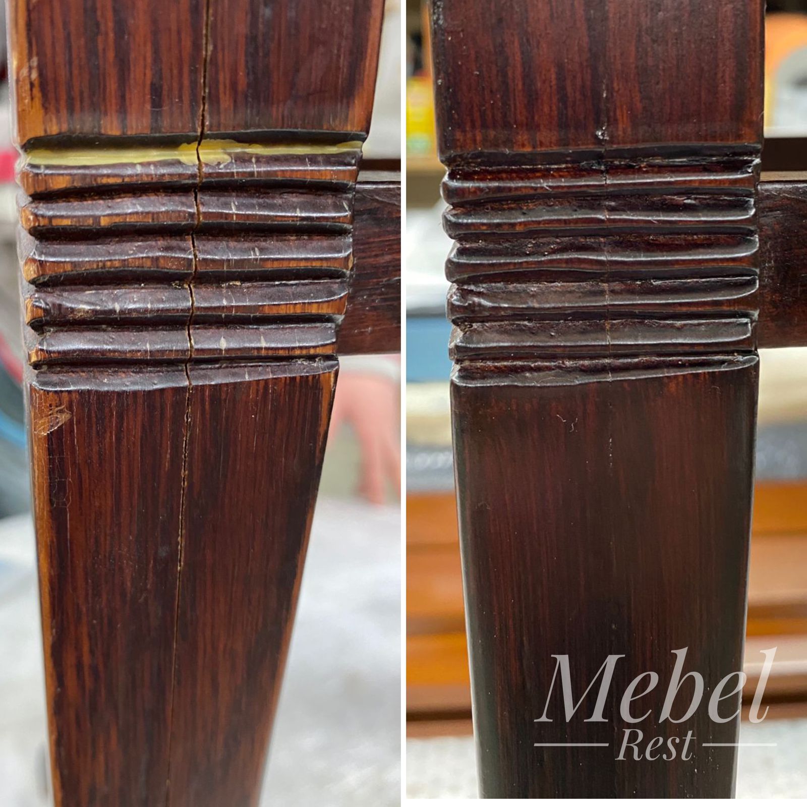 При неудачном падении у данного стула лопнул подлокотник. Ситуацию с восстановлением предмета осложнял еще и тот факт, что до этого стул уже подвергался подобного рода воздействиям, и буквально в паре миллиметров от свежего разлома была обнаружена старая, плохо отреставрированная трещина.