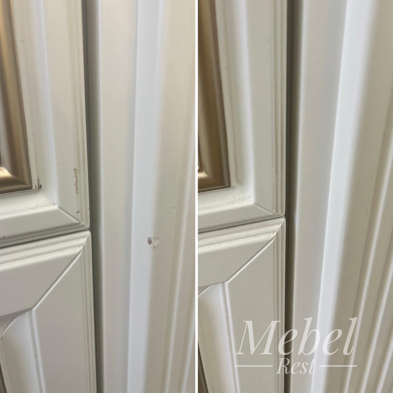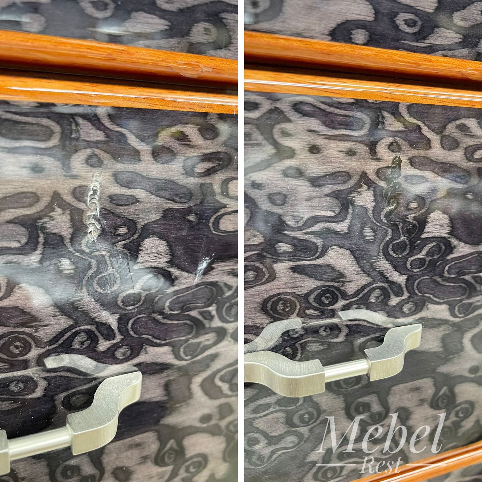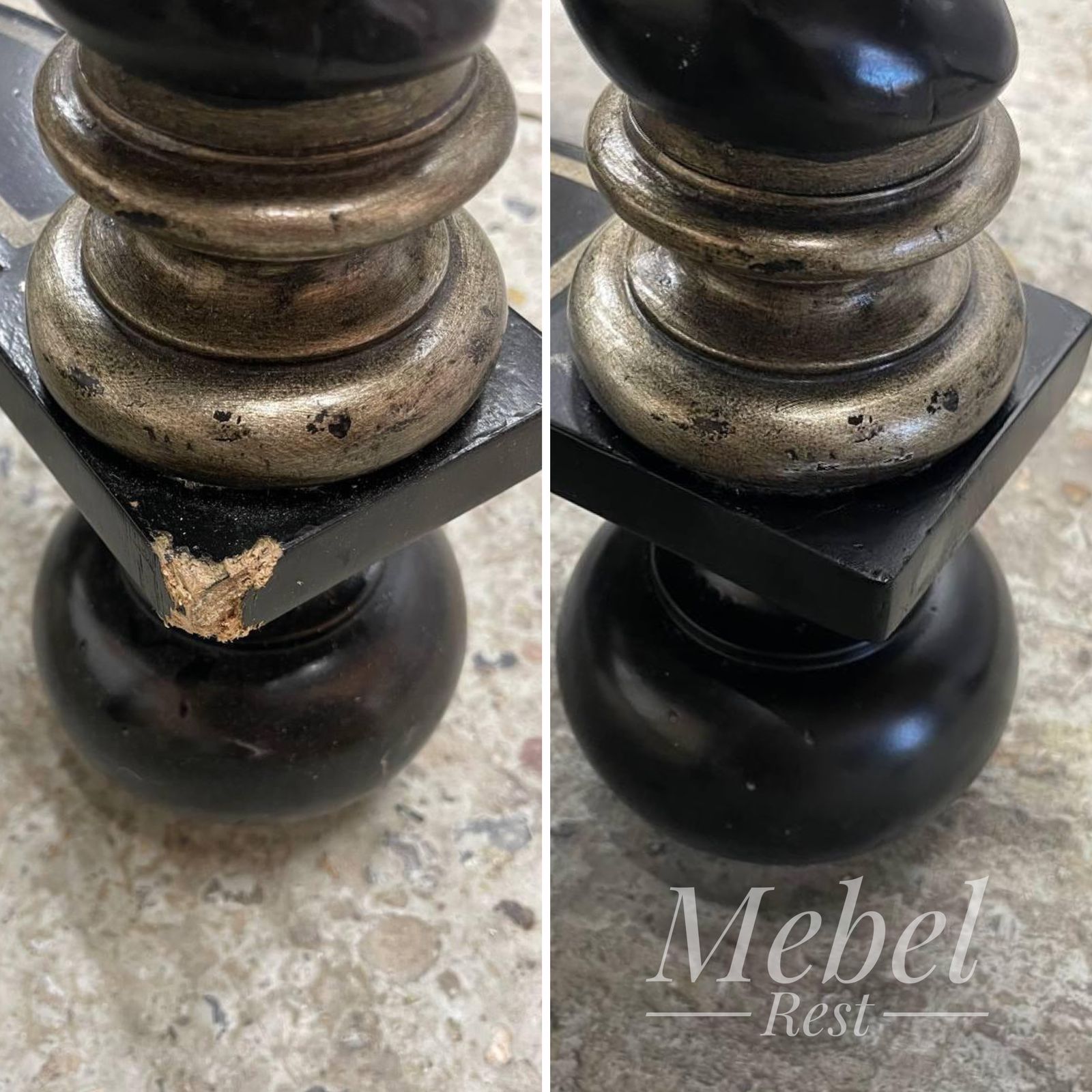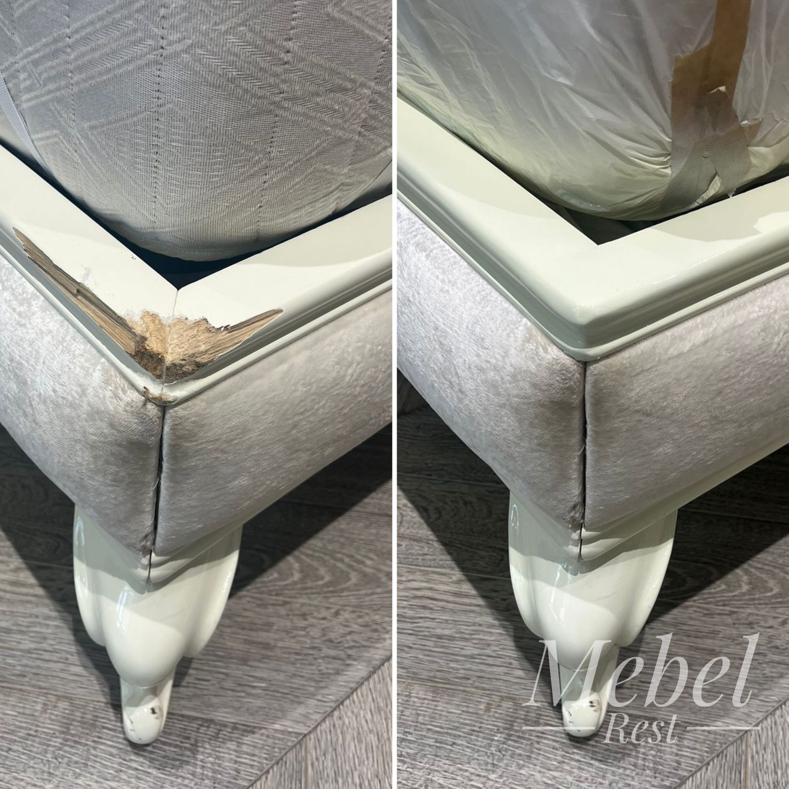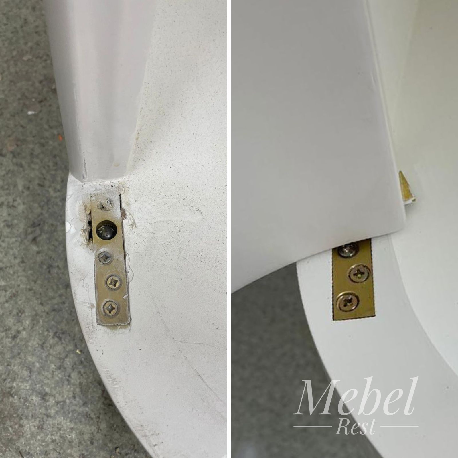 При неудачном падении у данного стула лопнул подлокотник. Ситуацию с восстановлением предмета осложнял еще и тот факт, что до этого стул уже подвергался подобного рода воздействиям, и буквально в паре миллиметров от свежего разлома была обнаружена старая, плохо отреставрированная трещина.