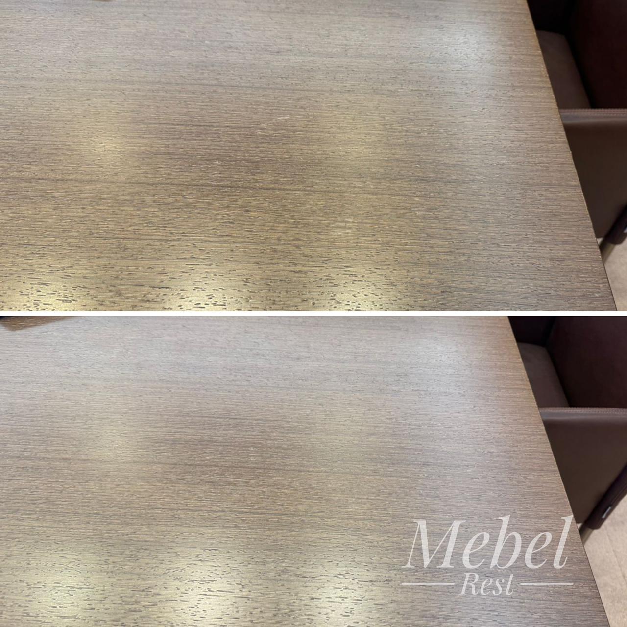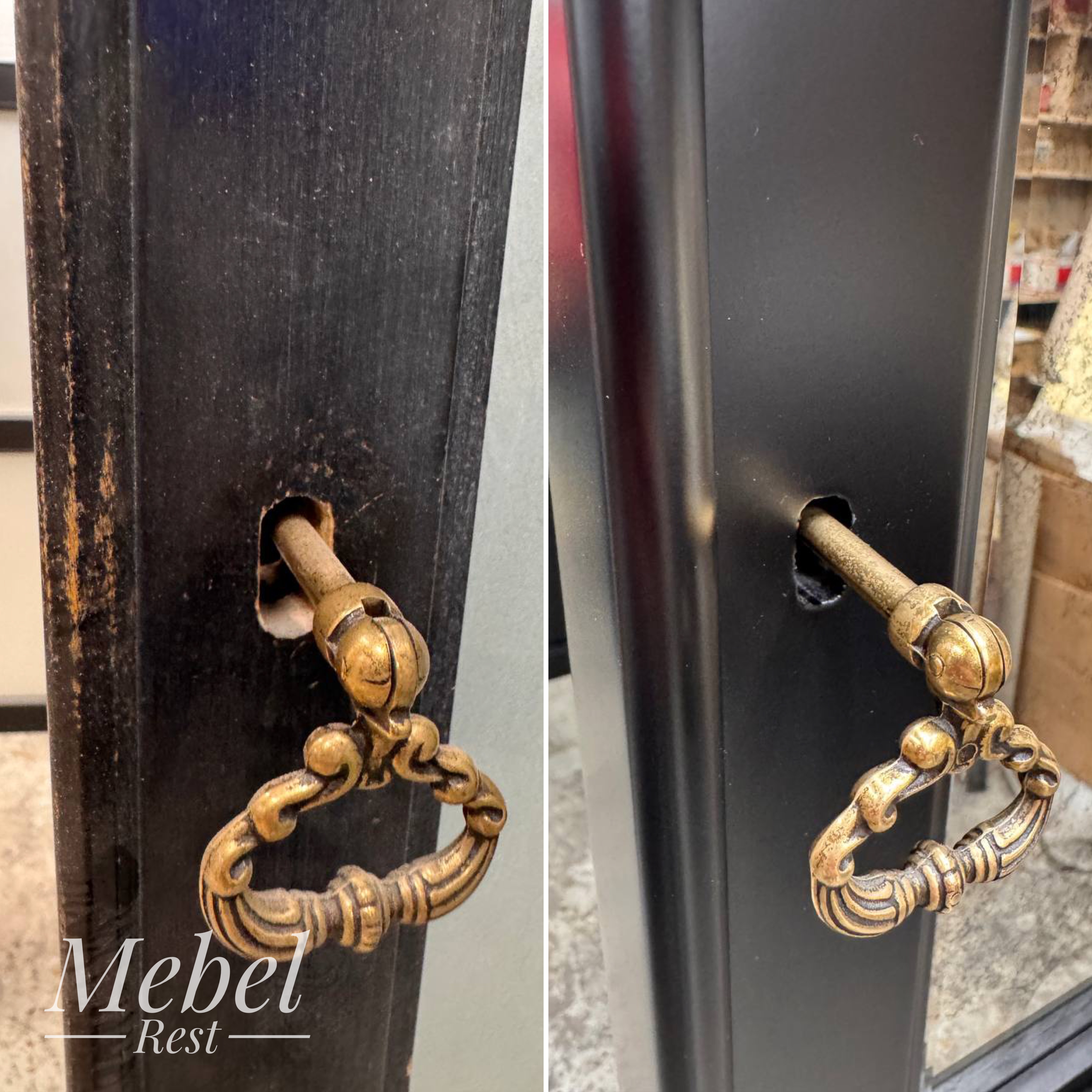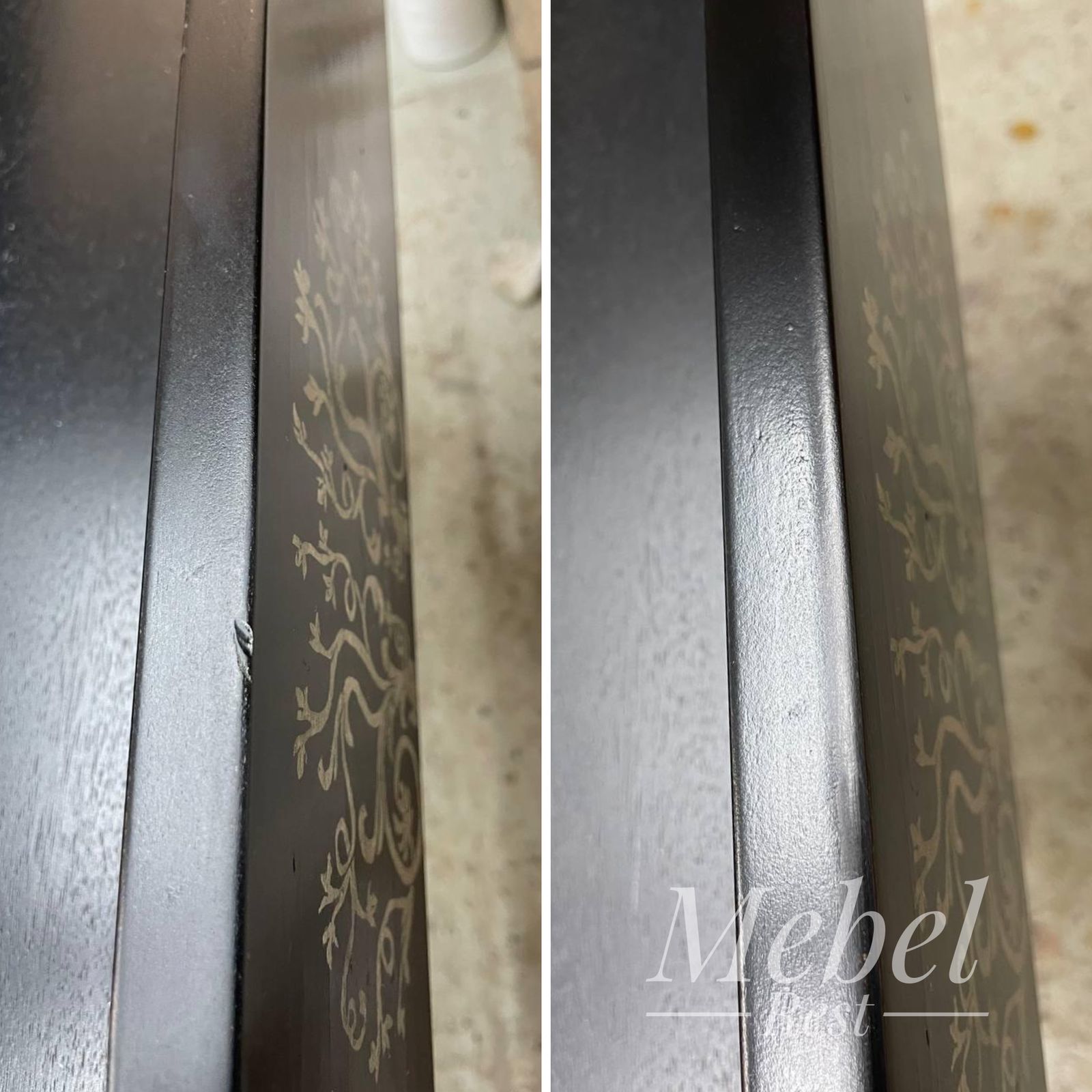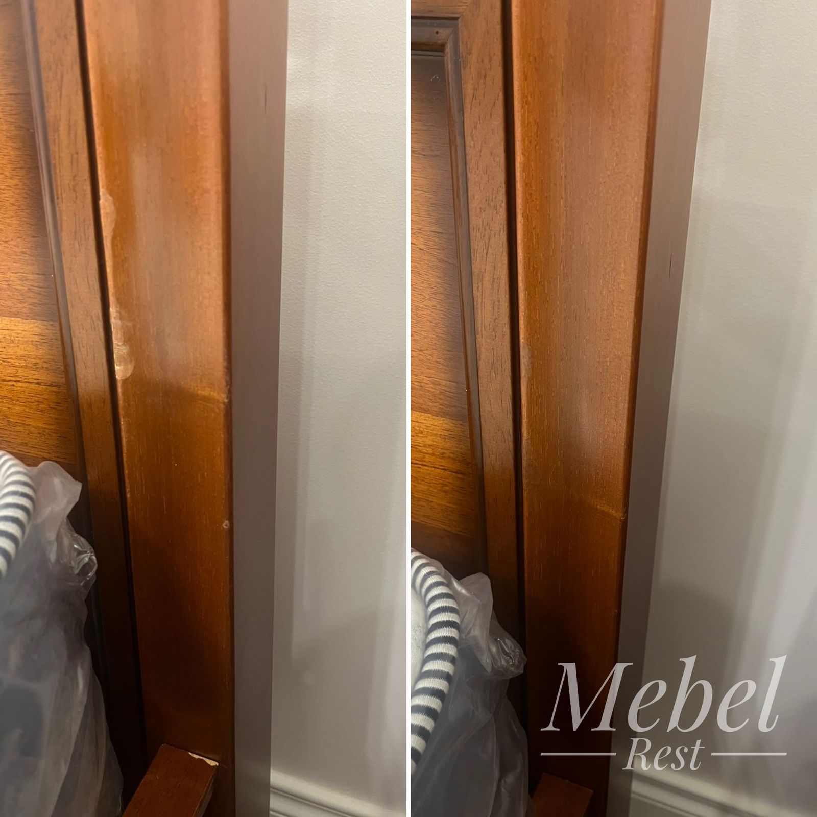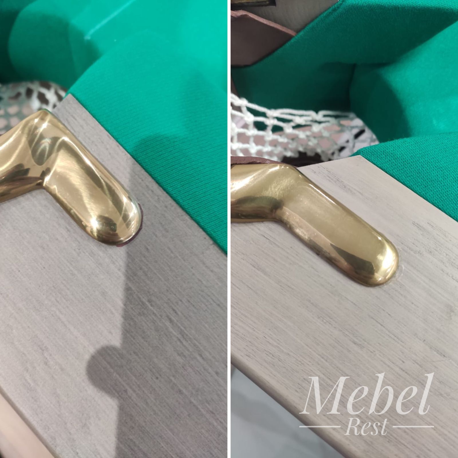 На второй день уже укрепленное место точечно было запаяно реставрационным воском, и подбирался тон фактуры дерева. На следующем этапе место реставрации было покрыто матовым водным лаком. На третий и четвертый день то же самое проделали с другим местом слома. Из-за предыдущего непрофессионального ремонта пришлось придать подлокотнику напряжение, чтобы свести две плоскости.
