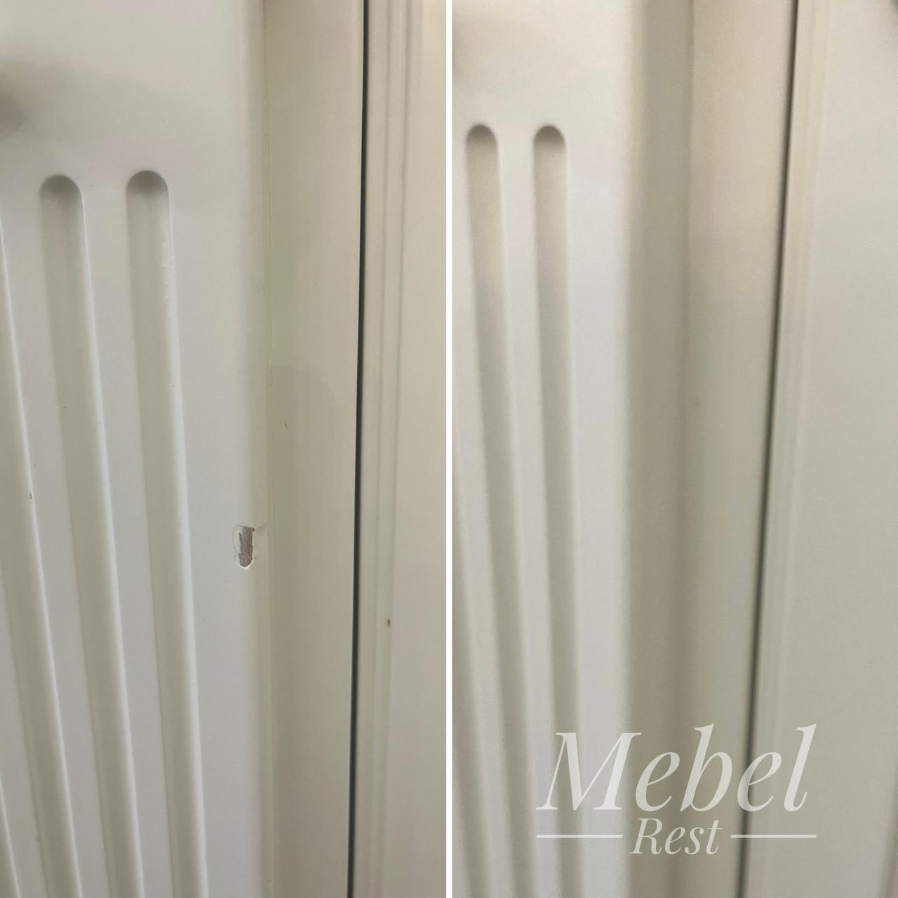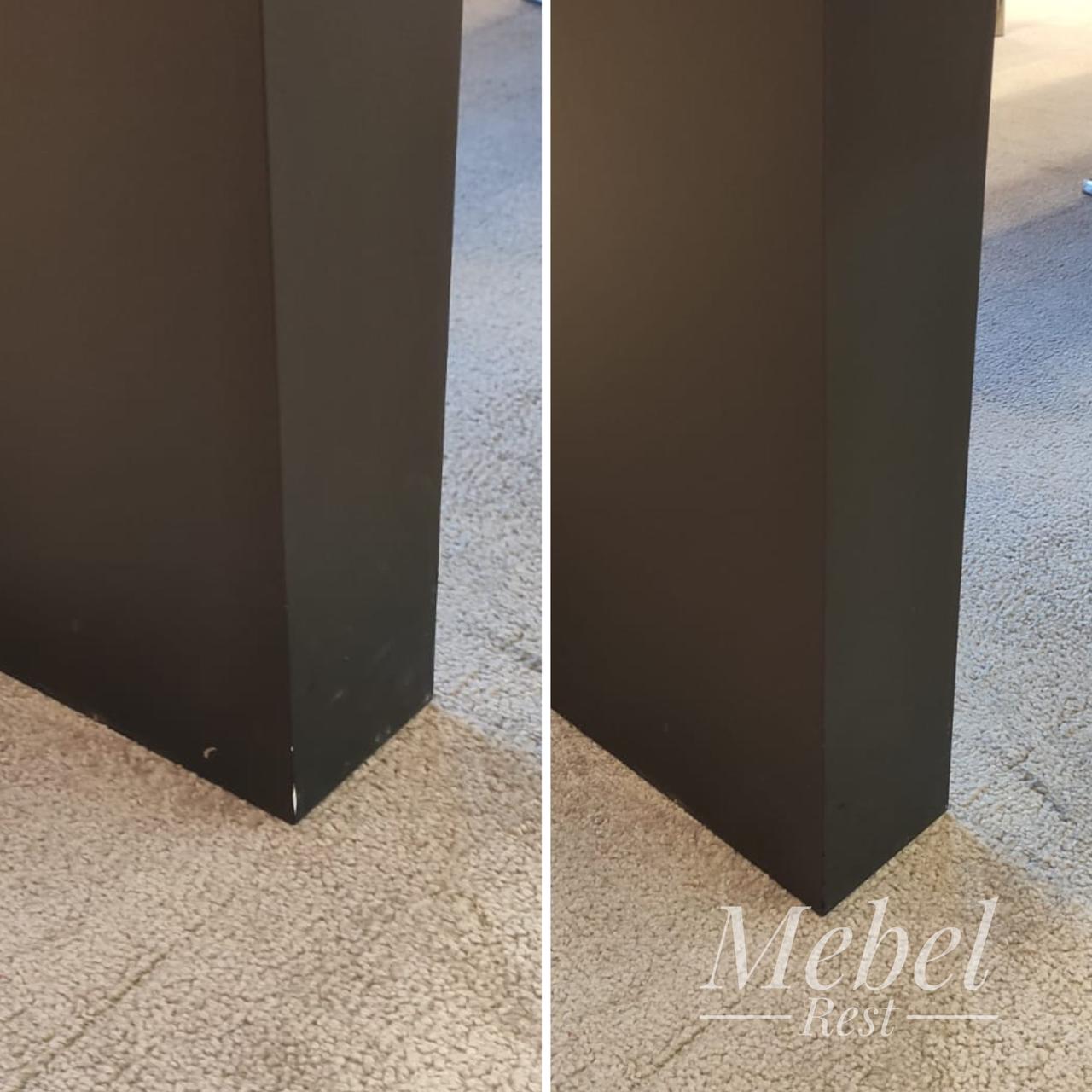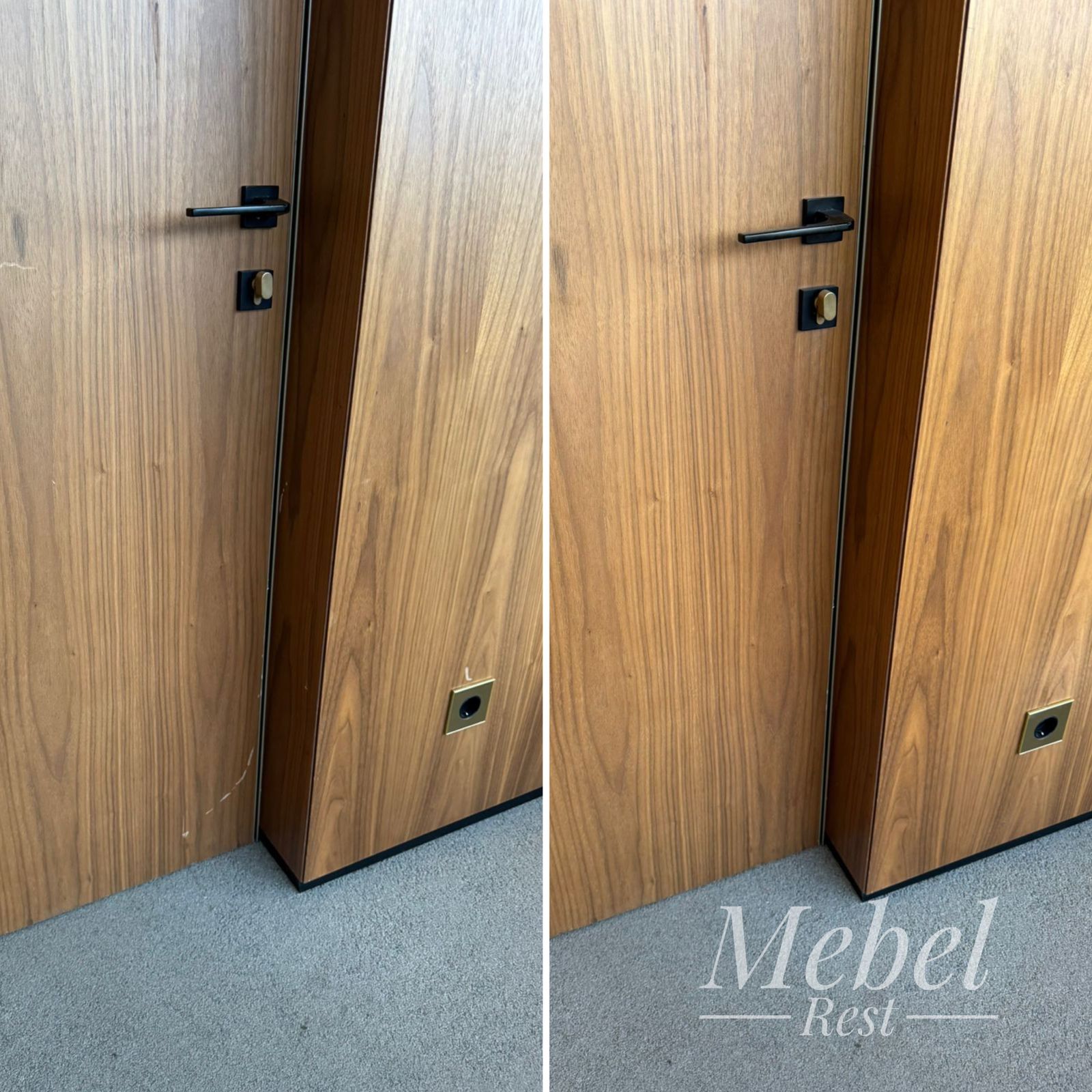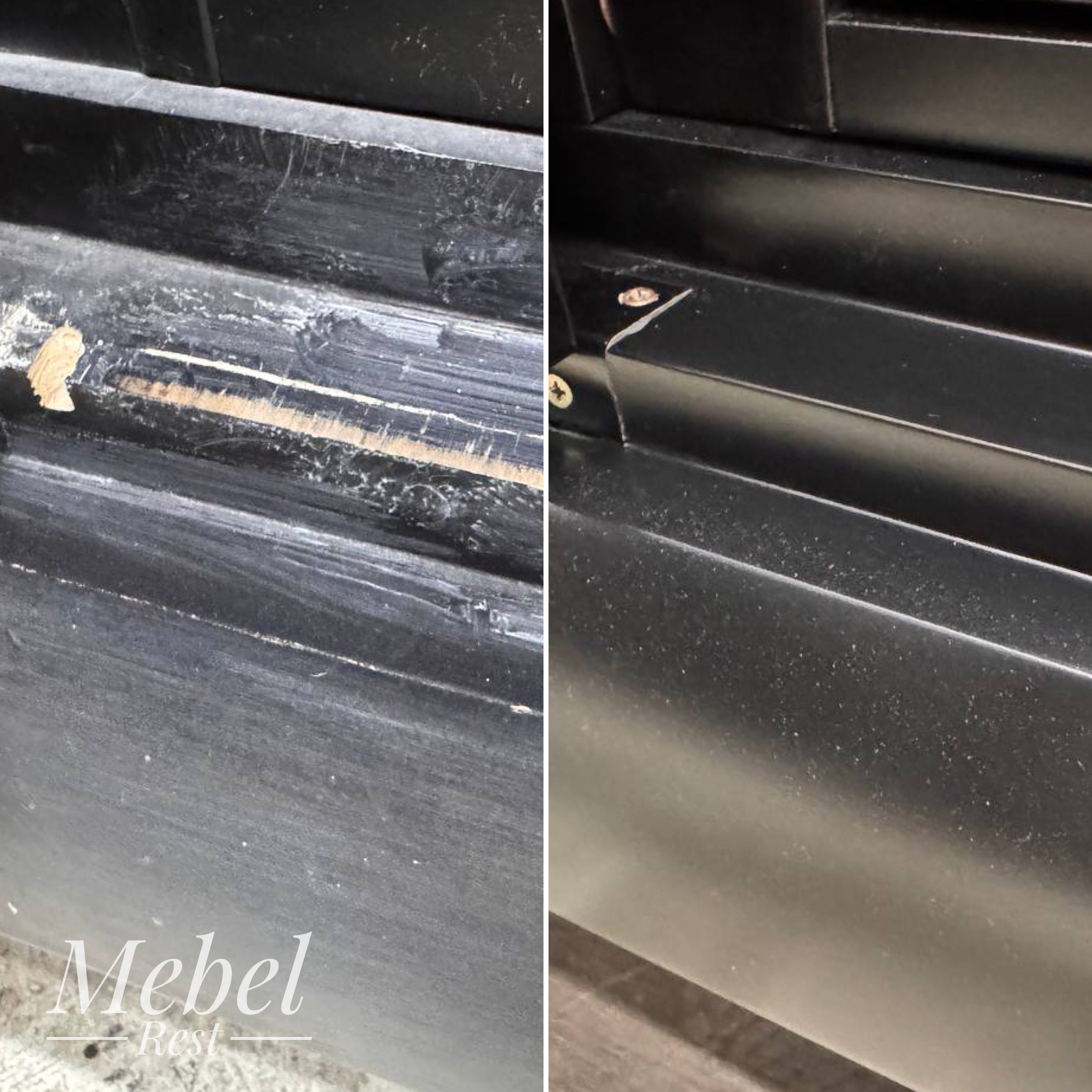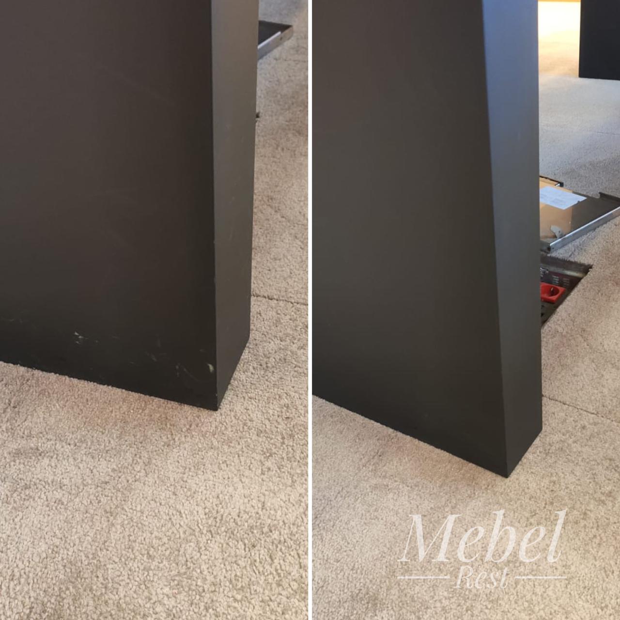 На второй день уже укрепленное место точечно было запаяно реставрационным воском, и подбирался тон фактуры дерева. На следующем этапе место реставрации было покрыто матовым водным лаком. На третий и четвертый день то же самое проделали с другим местом слома. Из-за предыдущего непрофессионального ремонта пришлось придать подлокотнику напряжение, чтобы свести две плоскости.