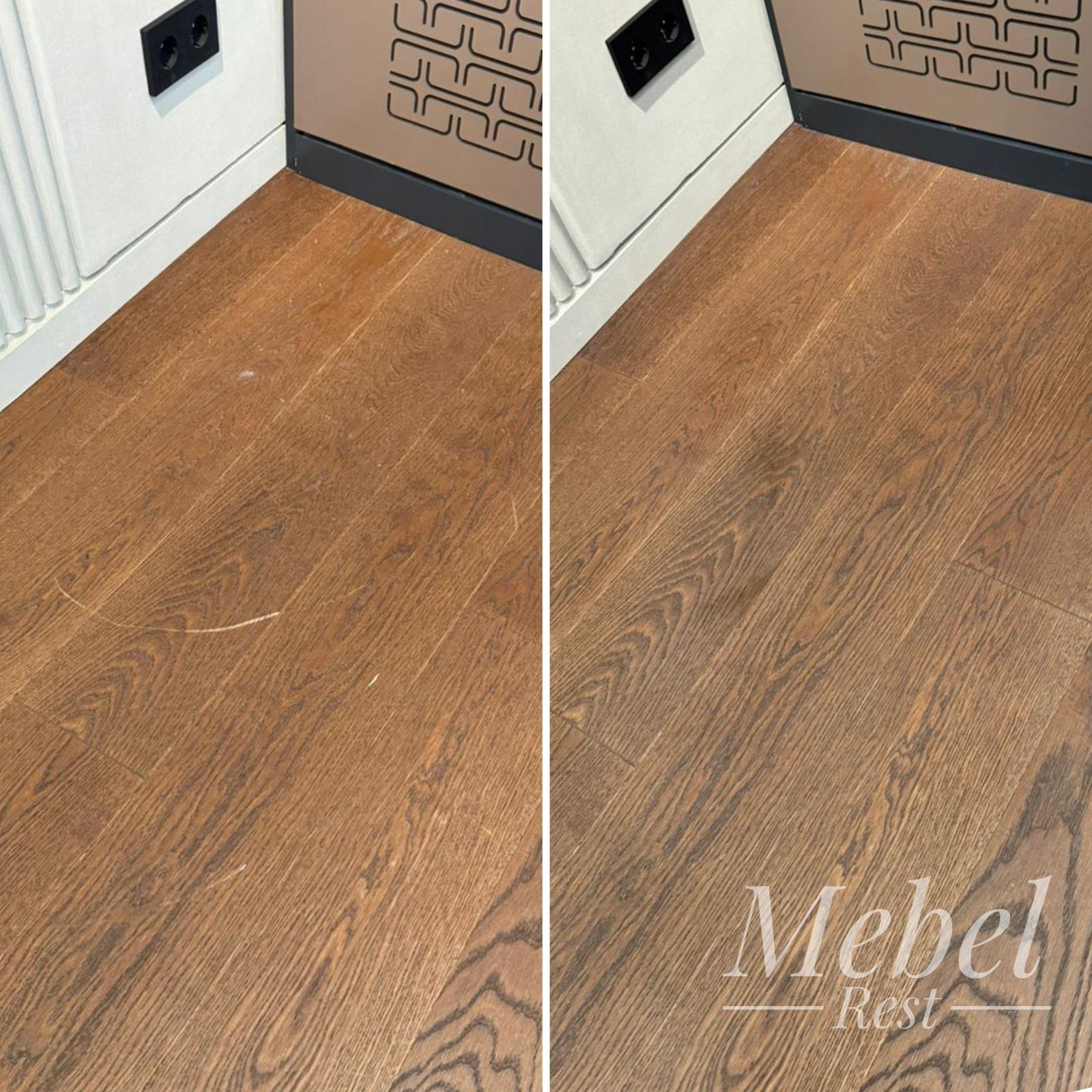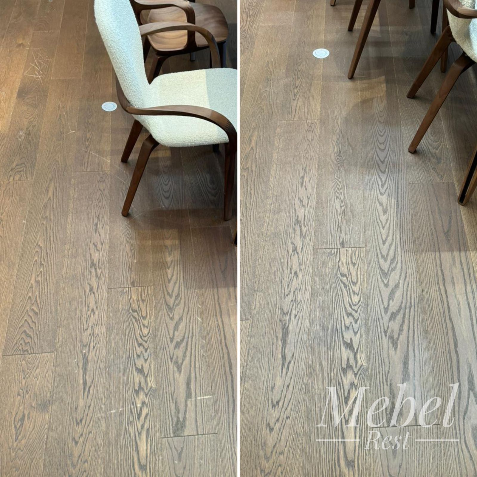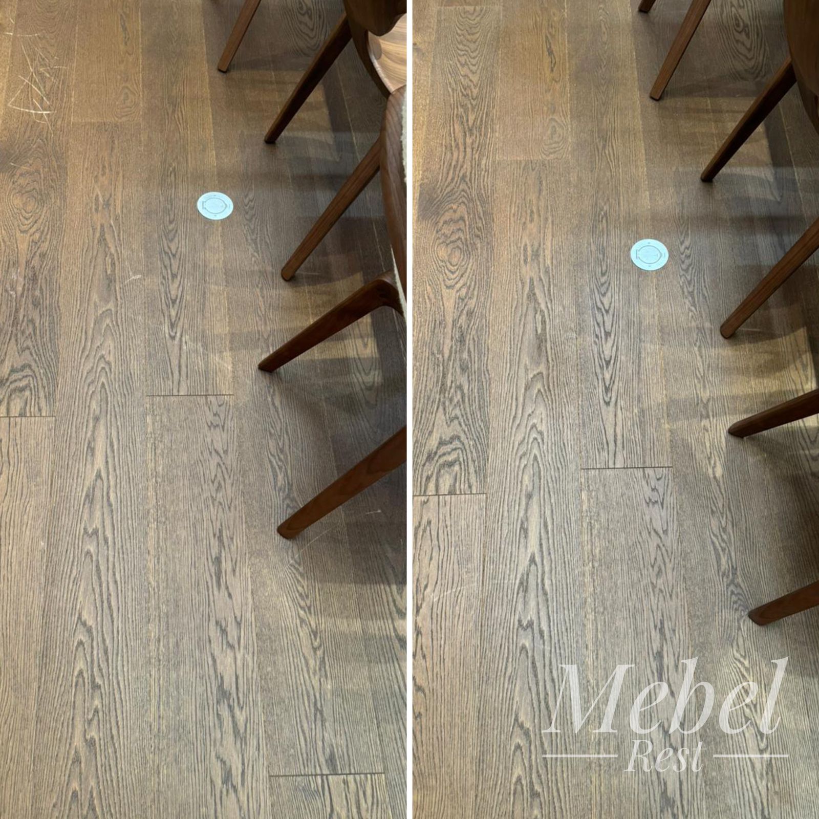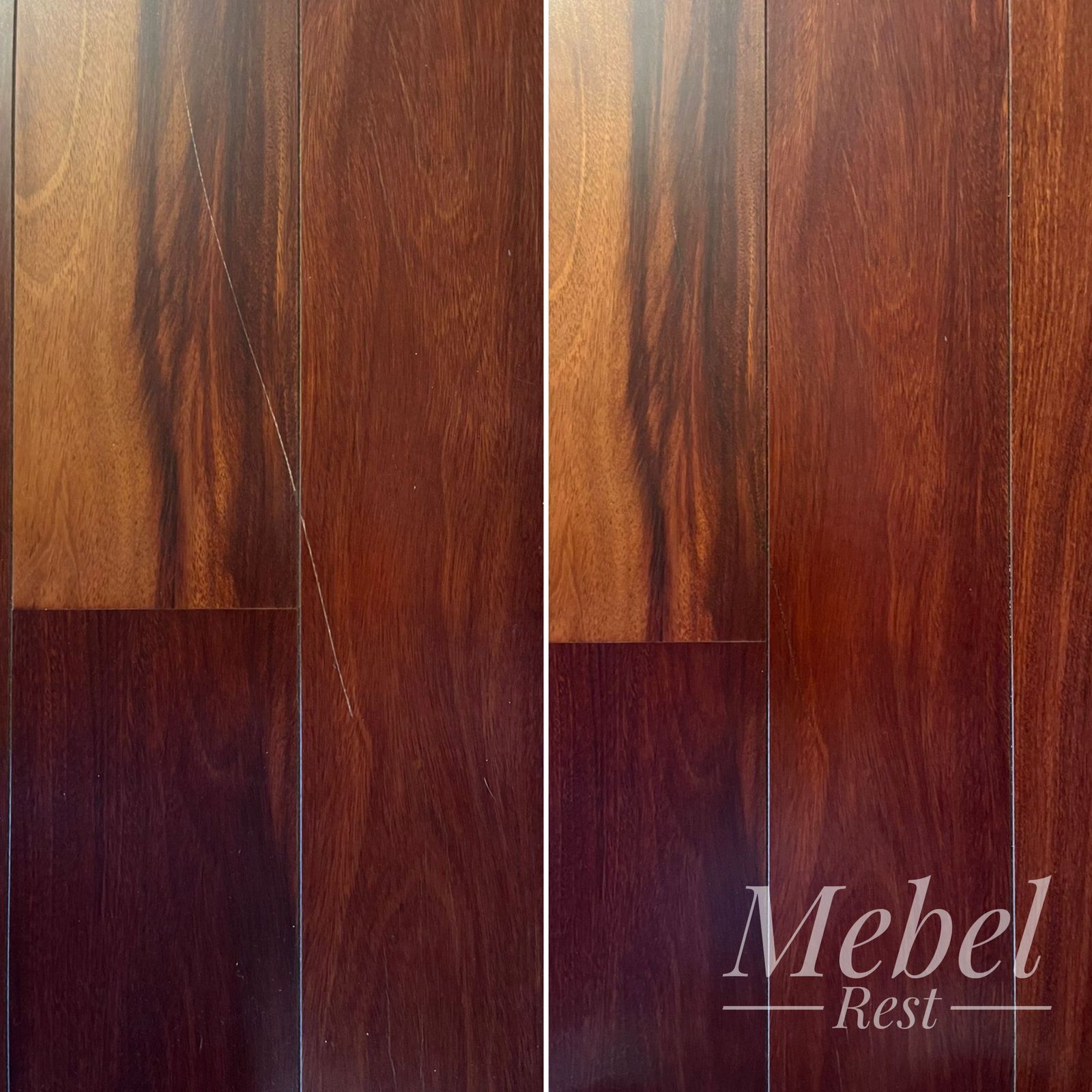 Наши мастера локально сняли верхний слой лака, специальными шпаклёвками устранили повреждения и отрисовали структуру дерева. Финальным этапом было закрепление покрытия безореольным лаком.